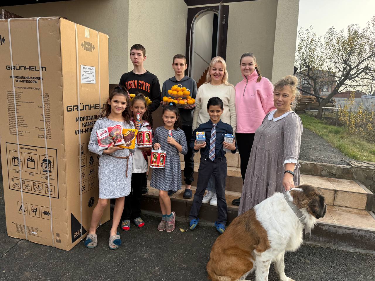 Казначеї подарували сім’ї морозильну камеру. Крім того, під час зустрічі дітям вручили подарунки та пригостили солодощами.