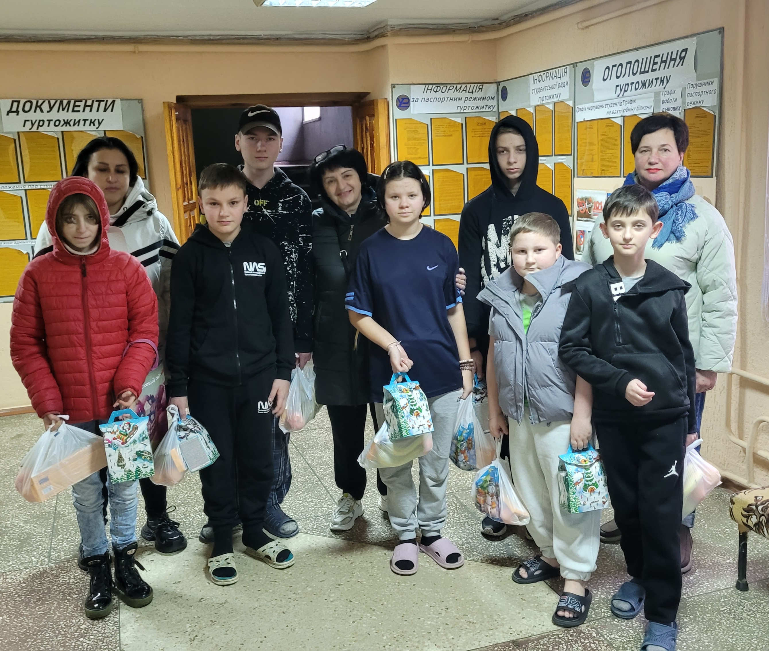 Привітали дітей та передали посильну колективну допомогу у вигляді засобів гігієни, продуктів харчування та солодощів.