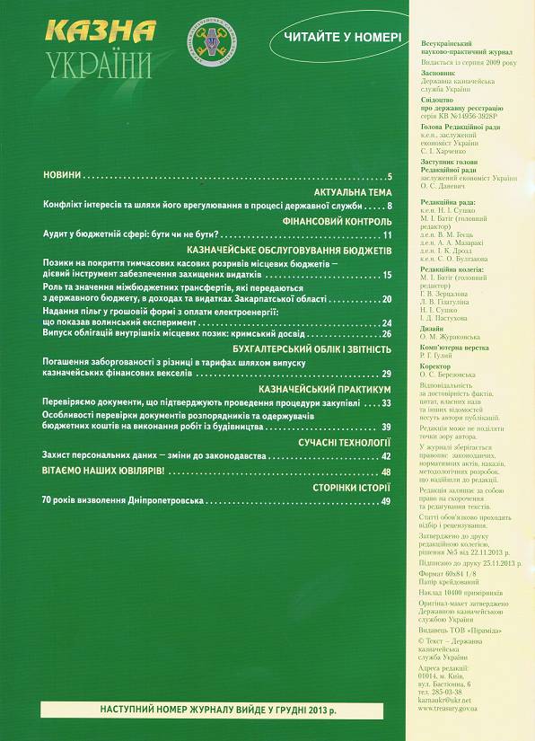 Вийшов у світ черговий номер Всеукраїнського науково-практичного журналу Державної казначейської служби України "Казна України"